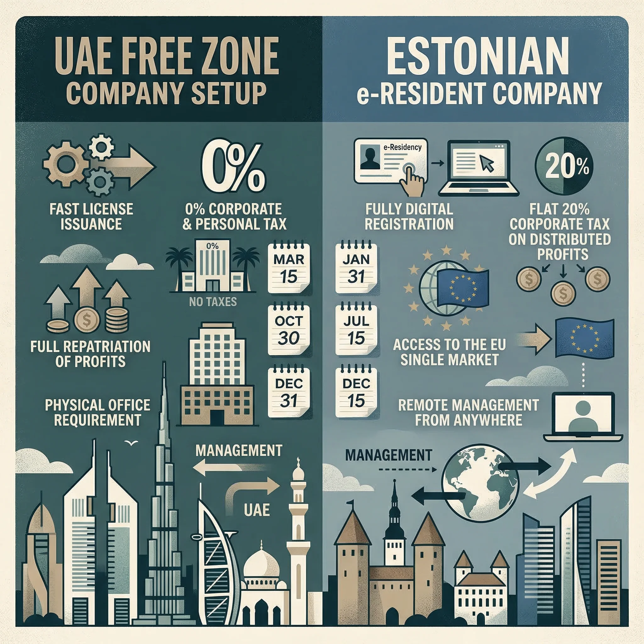 Founders often compare jurisdictions as if the only question is rate. Official guidance from the UAE and Estonia shows why that is too narrow.