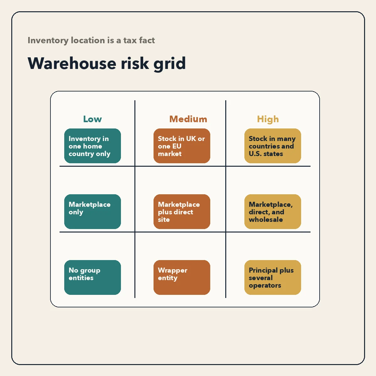 Inventory is the part founders keep trying to ignore because it is not glamorous. It is also the part that changes the legal answer. Once stock sits in a country, the tax conversation becomes more local and less theoretical.