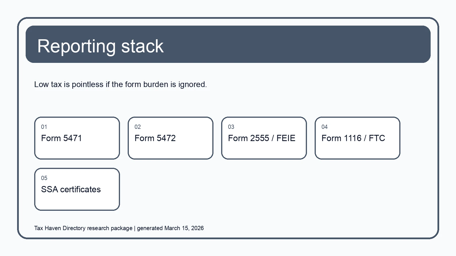 | Cross-border reporting forms | Prevents penalties and keeps the structure defensible | The founder discovers Form 5471 or 5472 only after year-end |